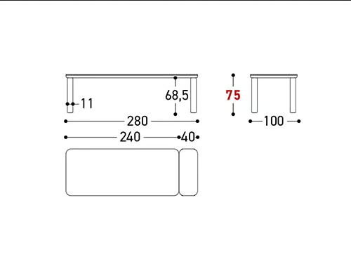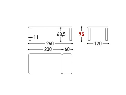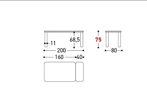 | Размеры | Длина (см): 200 Высота (см): 75 Глубина (см): 80 Раскладка (см): 40 |