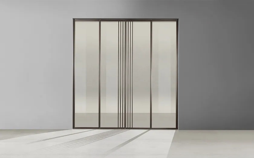 TIP I30 отличается элегантными линиями и утонченным силуэтом, который привлекает внимание, не перегружая пространство. Проблемная ручка-перекладина, толще декоративных элементов, служит как функциональной, так и эстетической особенностью, приглашая пользователей взаимодействовать с дверью. Общий дизайн подчеркивает прозрачность и свет, делая дверь привлекательной точкой фокуса в любой комнате.