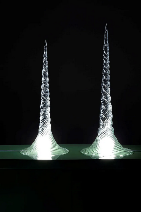 Ручная blown стеклянная настольная лампа с элегантным дизайном от ERBA ITALIA является потрясающим дополнением к любому современному интерьеру. Эта лампа тщательно изготовлена из blown стекла, имея уникальную форму рога, которая элегантно закручивается и растягивается. Внутренний источник света усиливает ее изогнутые линии, создавая завораживающий визуальный эффект, который улучшает ваше пространство. Идеально подходит для освещения аксессуаров, эта лампа предлагает как функциональность, так и художественный стиль, что делает ее идеальной для гостиных, спален или любой области, которая выигрывает от утонченного освещения.