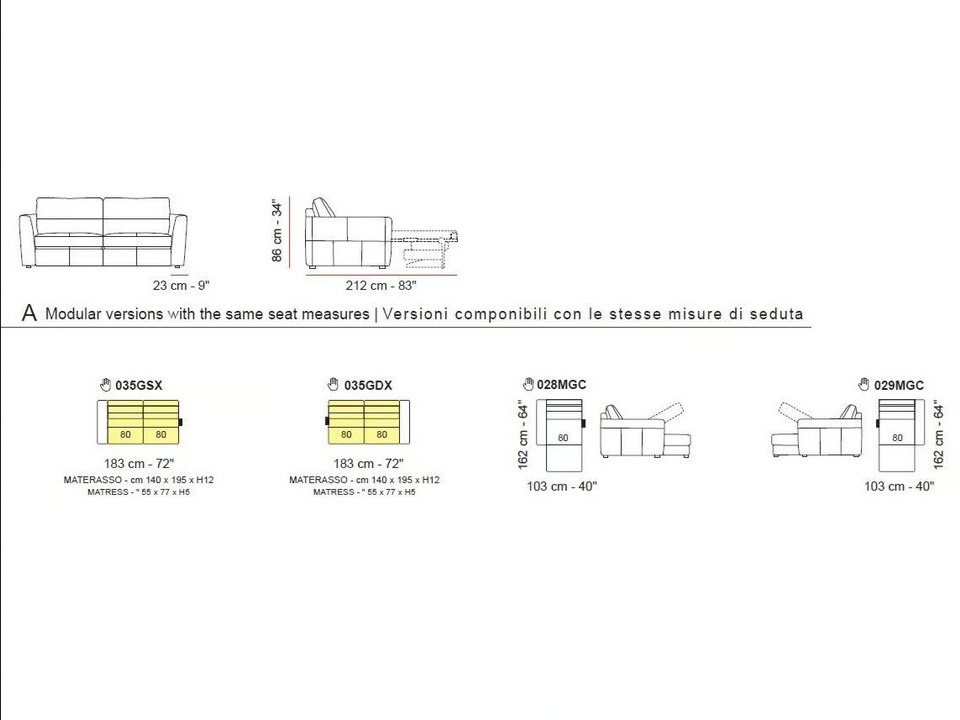 диван-кровать Амальфи доступен в различных размерах, что обеспечивает идеальную посадку для вашего пространства. Варианты варьируются от компактных конфигураций, идеальных для небольших комнат, до более крупных установок для более просторных зон. Размеры тщательно продуманы, чтобы соответствовать современным стандартам комфорта, обеспечивая достаточное место для сидения и сна.