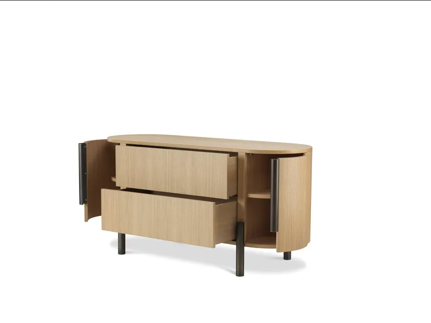 Этот комод предлагает ряд функциональных особенностей, включая большие фронтальные ящики для обширного хранения и изогнутые боковые двери для легкого доступа. Инновационный дизайн максимизирует эффективность использования пространства, сохраняя ваши вещи организованными. Интеграция продуманных решений для хранения делает этот предмет идеальным для современного образа жизни, где функциональность важна не меньше, чем стиль.