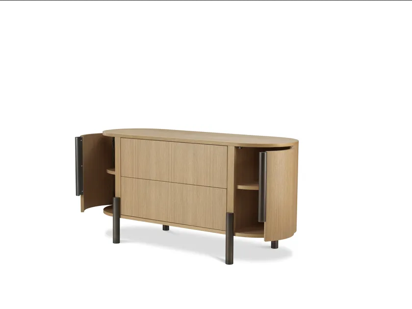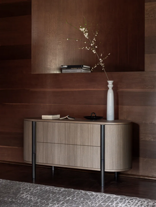 Изогнутый дубовый комод и прикроватная тумбочка TARANTINO от GHIDINI1961 воплощает элегантность и современный дизайн. С gracefully curved lines, которые идеально дополняют ваш декор спальни, этот предмет выделяется как фокусная точка. Изготовленный с точностью, он предлагает щедрое хранение благодаря просторным фронтальным ящикам и gracefully curved side doors. Идеально подходит для тех, кто ищет сочетание стиля и функциональности, этот предмет мебели улучшает как эстетику, так и практичность в любом современном интерьере спальни.