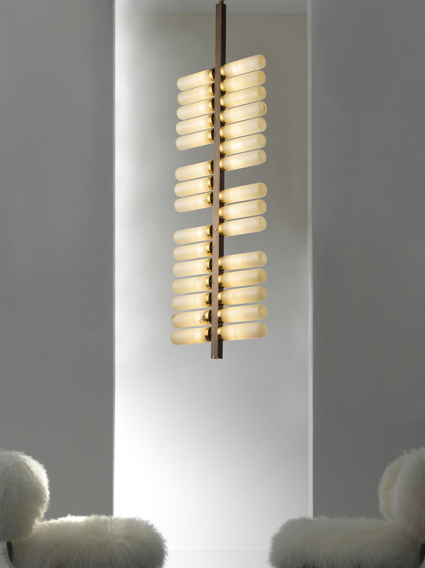 Вертикальная люстра из натуральной латуни с алебастром SIGMA L2 7299/30