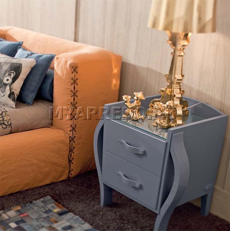 Тумбочка с 2-мя ящиками, столешница выполнена из стекла. Возможны другие цветовые варианты отделки.