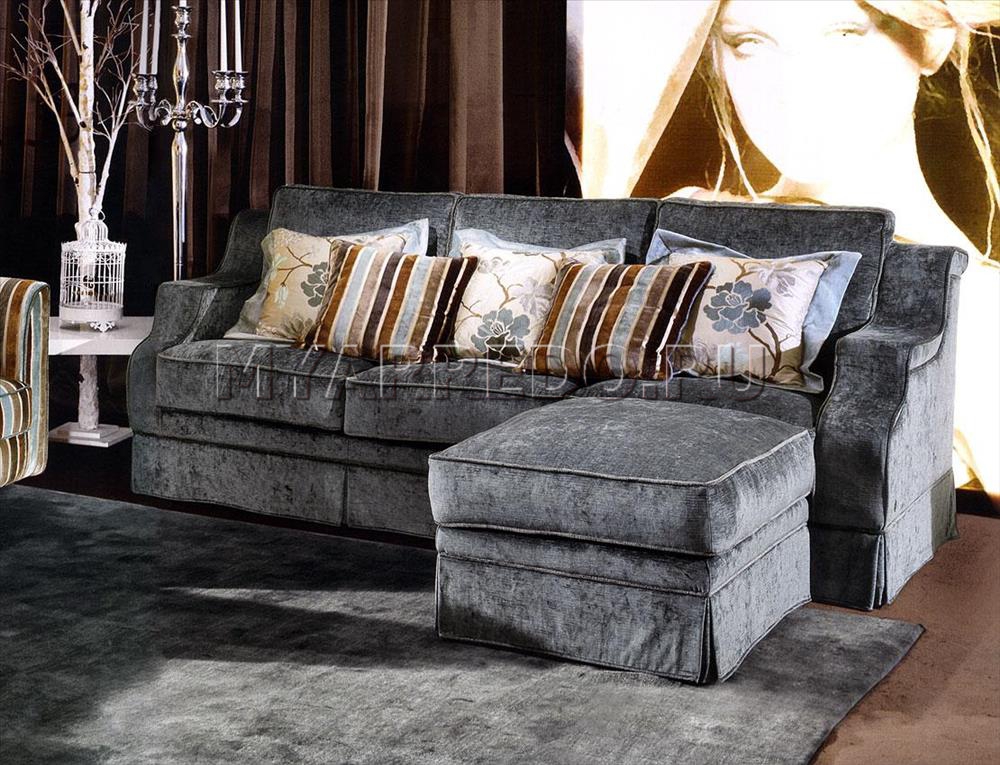Трехместный диван с обивкой их ткани. Наполнение - пух, перо. Диван может быть укомплектован раскладным механизмом. Минимальный размер двери, в которую может пройти модель - 70 см. Заказать данный диван можно в различных вариантах обивки.