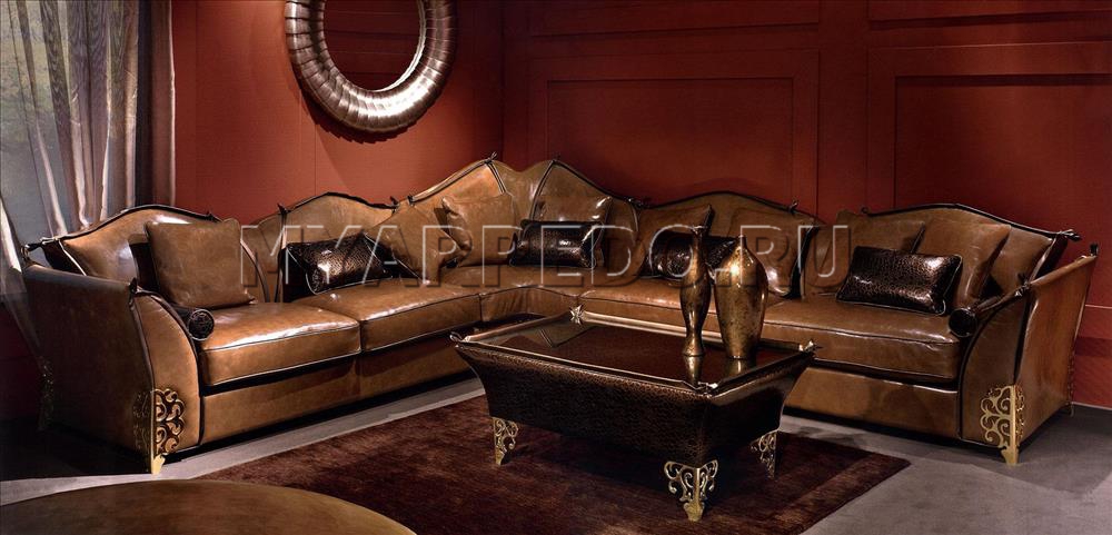 Угловой модульный диван фабрики BM Style. Обивка - кожа. Наполнение - пенополиуретан. Фигурные ножки. Заказать данный диван можно в различных вариантах обивки.