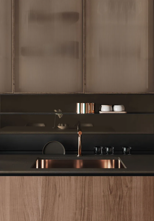 Дизайн LOGICA THECA подчеркивает простоту и элегантность. Его гладкие линии и бесшовная интеграция с рабочей поверхностью создают стильный вид, который визуально привлекателен. Внимание к деталям, начиная с выбора материалов и заканчивая механизмом двери, демонстрирует приверженность бренда качеству и эстетическому совершенству, делая его центром внимания на любой кухне.
